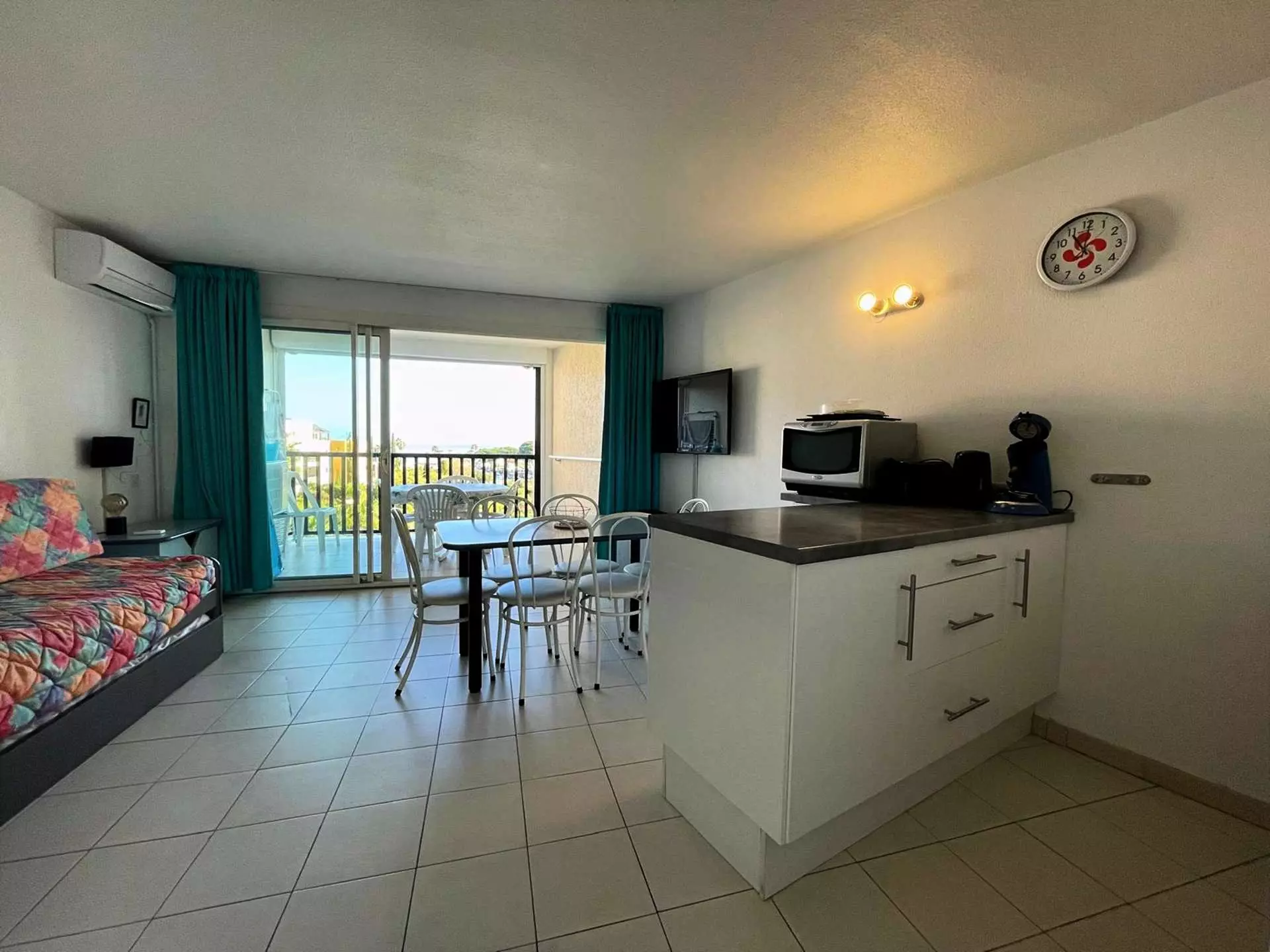 This air-conditioned 37m² apartment on the 3rd floor with elevator is the perfect place for your next holiday with friends or family. It can accommodate up to 6 people.