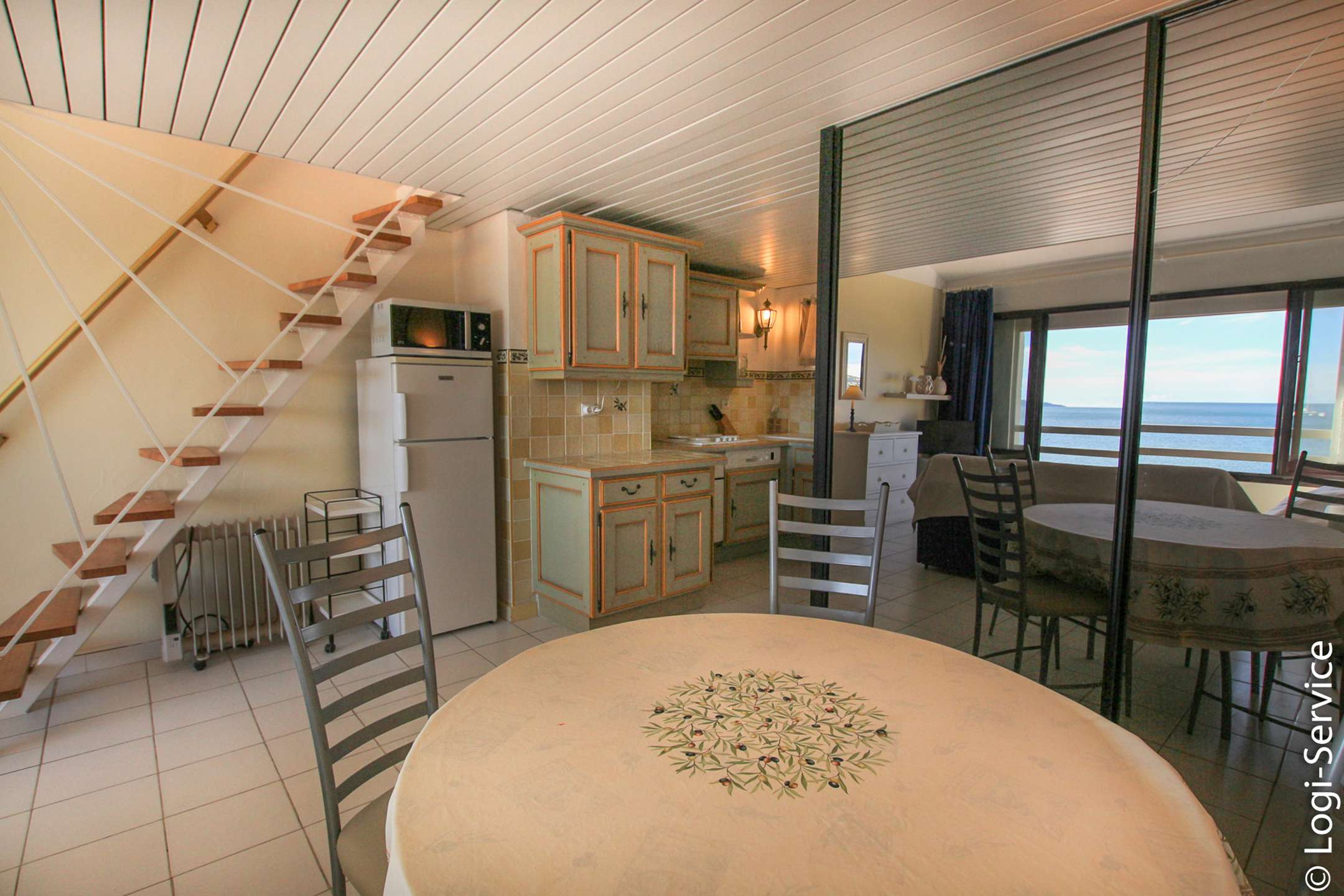 It consists of an entrance with kitchenette, a shower room with toilet, living room and a mezzanine. Lovely sea view.