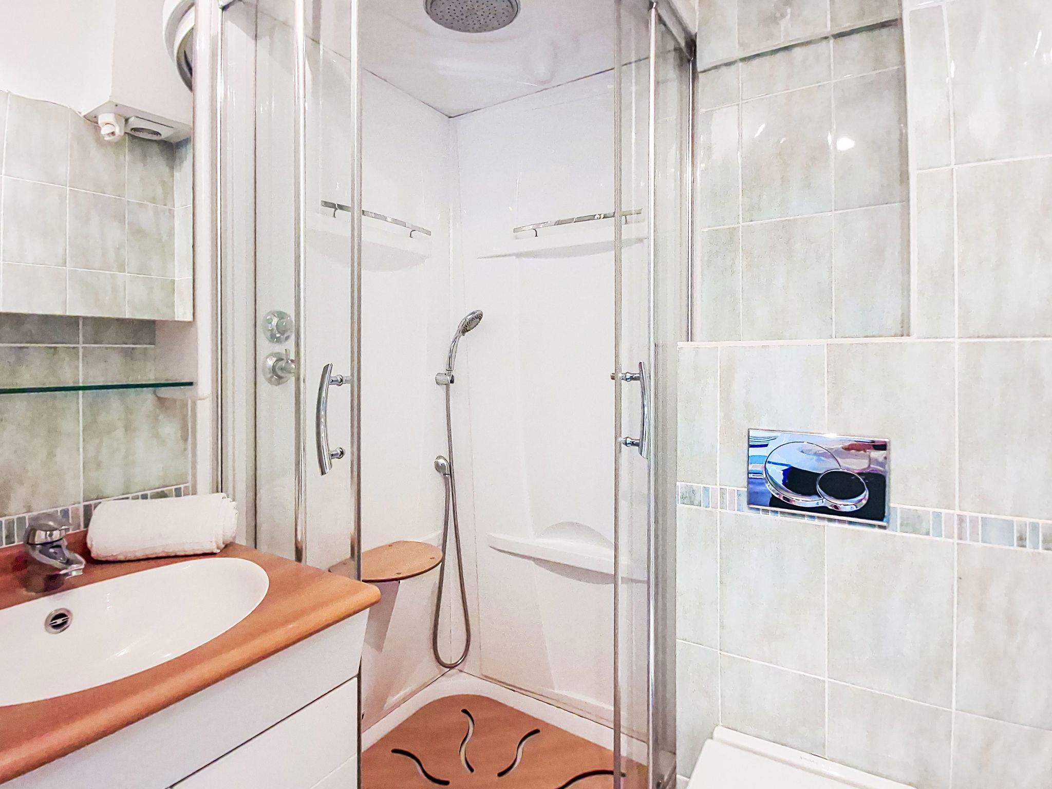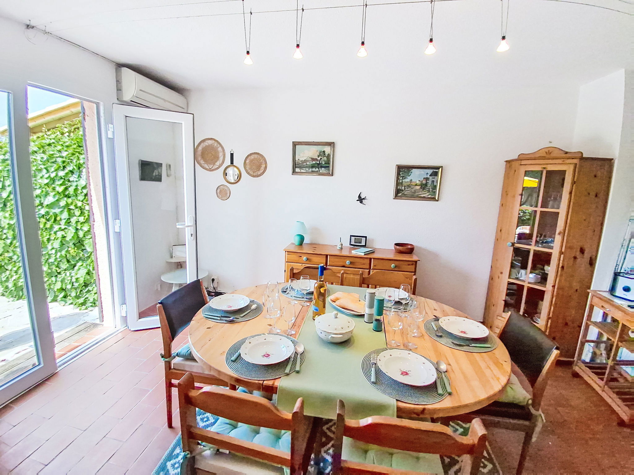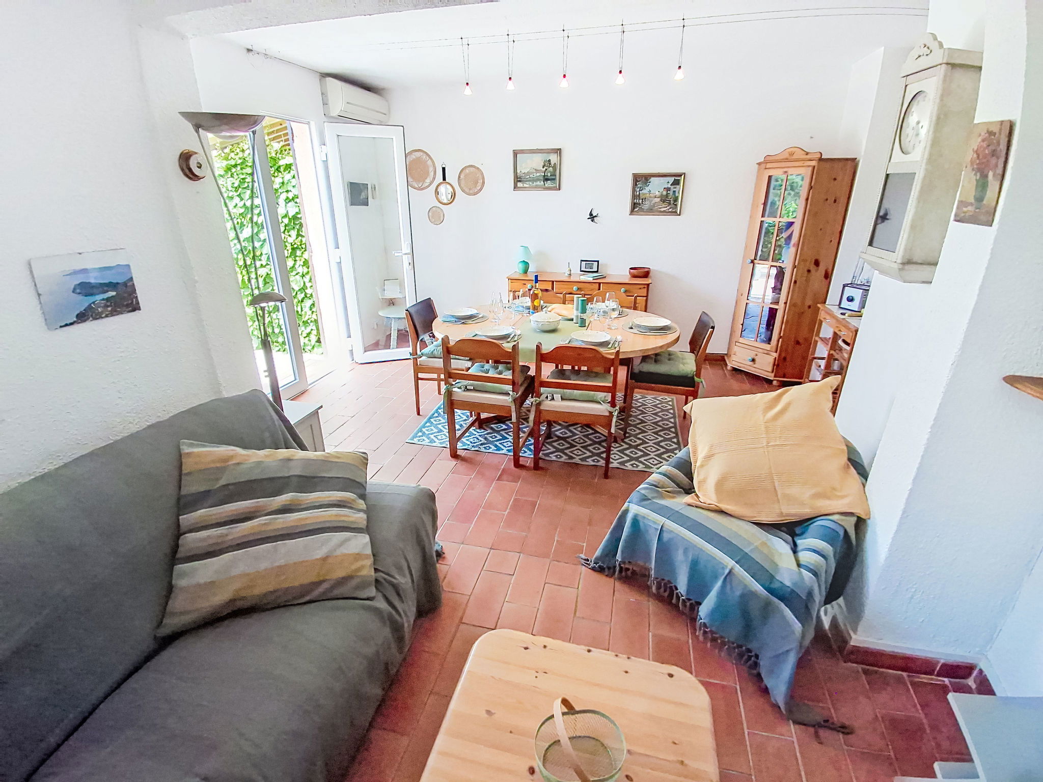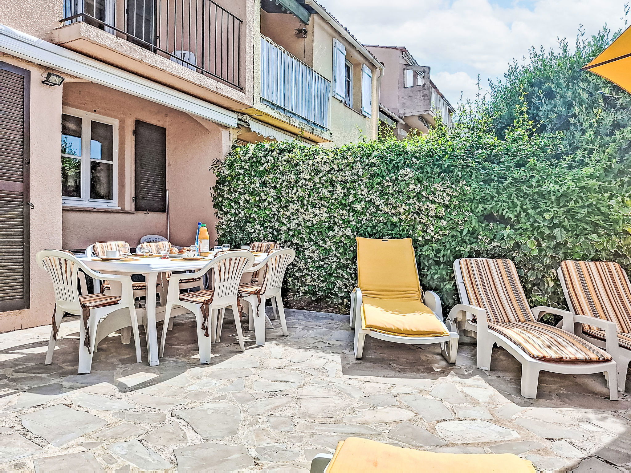 "Les Mas de Cogolin 4", 4-room terraced house 65 m2 on 2 levels. Cosy furnishings: living/dining room with TV (flat screen), air conditioning. Exit to the terrace. Kitchen (dishwasher, 2 ceramic glass hob hotplates, toaster, kettle, microwave, electric coffee machine, Capsules for coffee machine (Senseo) extra). Sep. WC. Upper floor: 1 room with 1 french bed (140 cm, length 190 cm). 1 small room with 1 x 1 bunk beds (140 cm, length 190 cm). 1 small room with 1 french bed (140 cm, length 190 cm). Shower/WC. Electric heating. Small balcony 3 m2, south facing position, terrace 15 m2, south facing position. Terrace furniture. Facilities: washing machine, iron, hair dryer. Internet (WiFi, free). Parking space n I4. Please note: non-smoking house. Smoke alarm. Offer by a private individual according to Art. 155, IV of CGI.