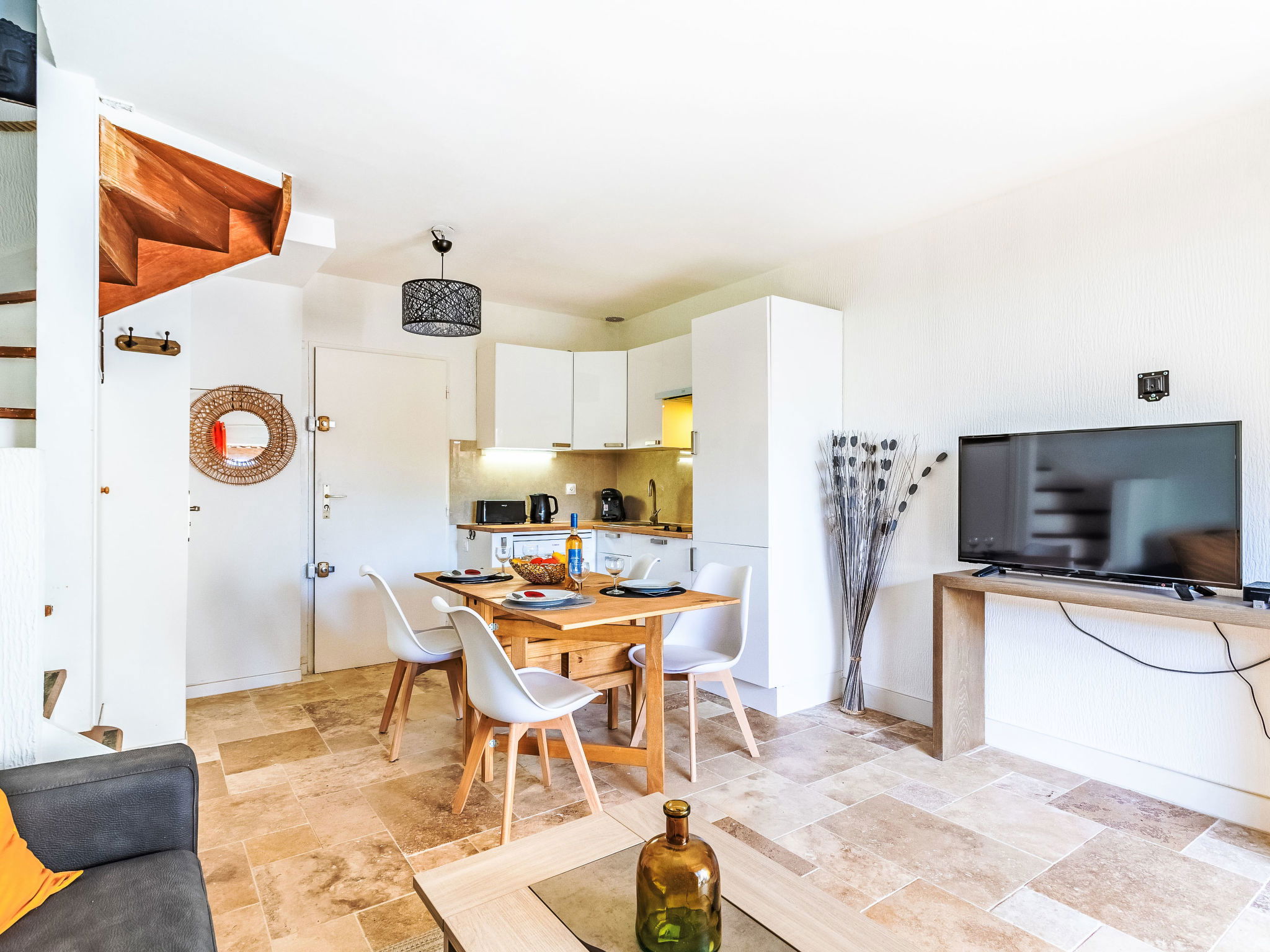 "Le Hameau de Gassin 1", 3-room terraced house 60 m2 on 2 levels. Fully renovated in 2022, beautiful furnishings: living/dining room with 1 sofabed (140 cm, length 190 cm), TV (flat screen). Exit to the terrace. Open kitchen (dishwasher, 2 induction hot plates, toaster, kettle, microwave, electric coffee machine). Sep. WC. Upper floor: 1 room with 1 french bed (140 cm, length 190 cm). 1 room with 2 beds (90 cm, length 190 cm). Shower. Electric heating. Terrace 12 m2, garden 40 m2. Terrace furniture. Facilities: iron. Internet (WiFi, free). Parking space n 14. Please note: non-smokers only. 1 small pet/ dog allowed. Smoke alarm. Offer by a private individual according to Art. 155, IV of CGI. 83065000982X9