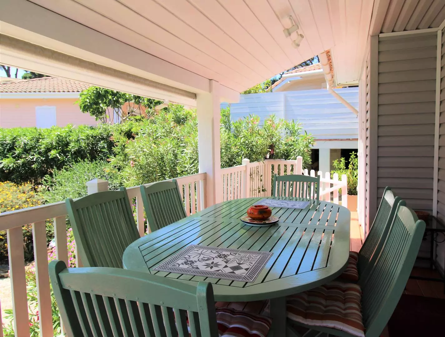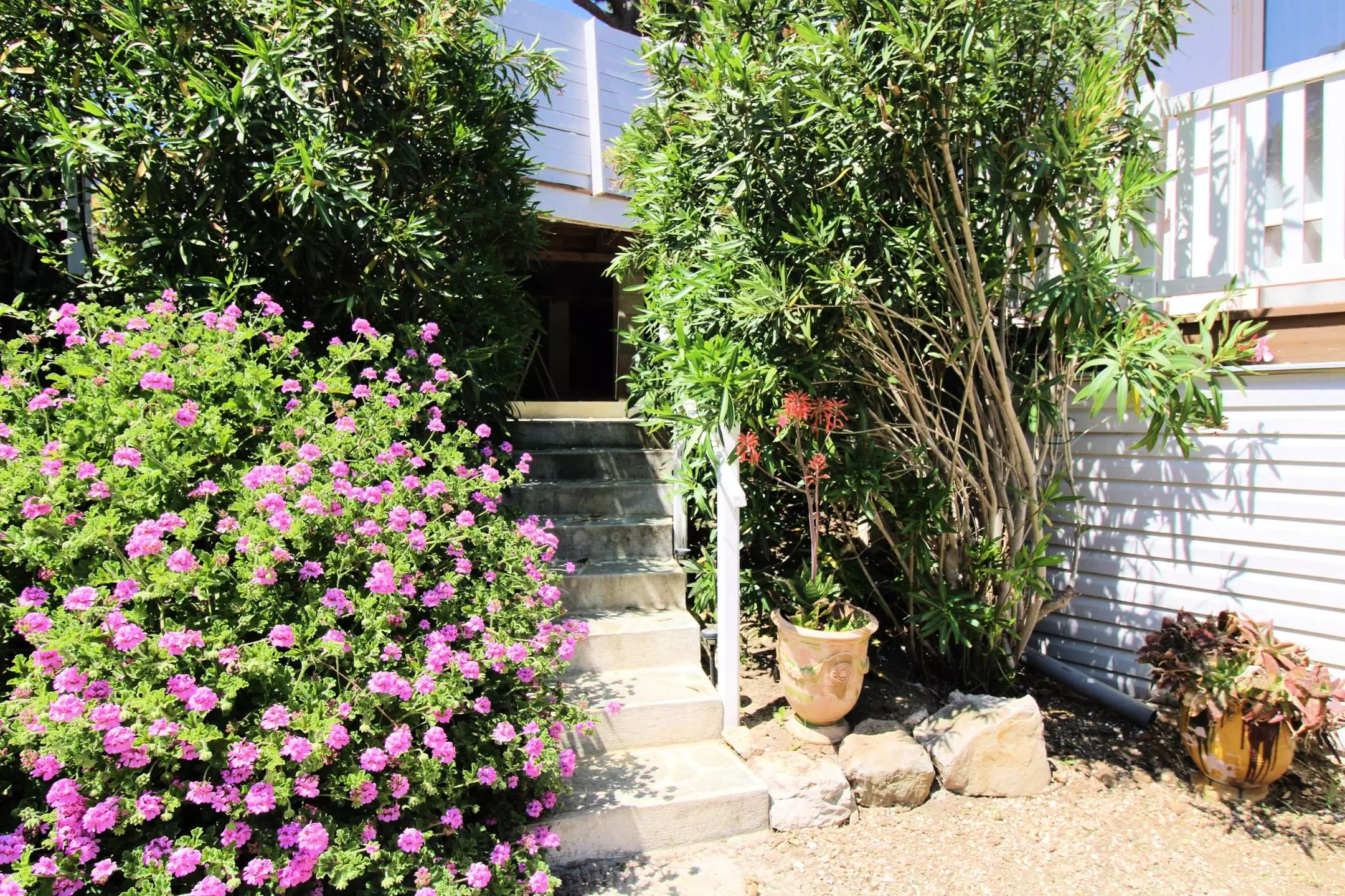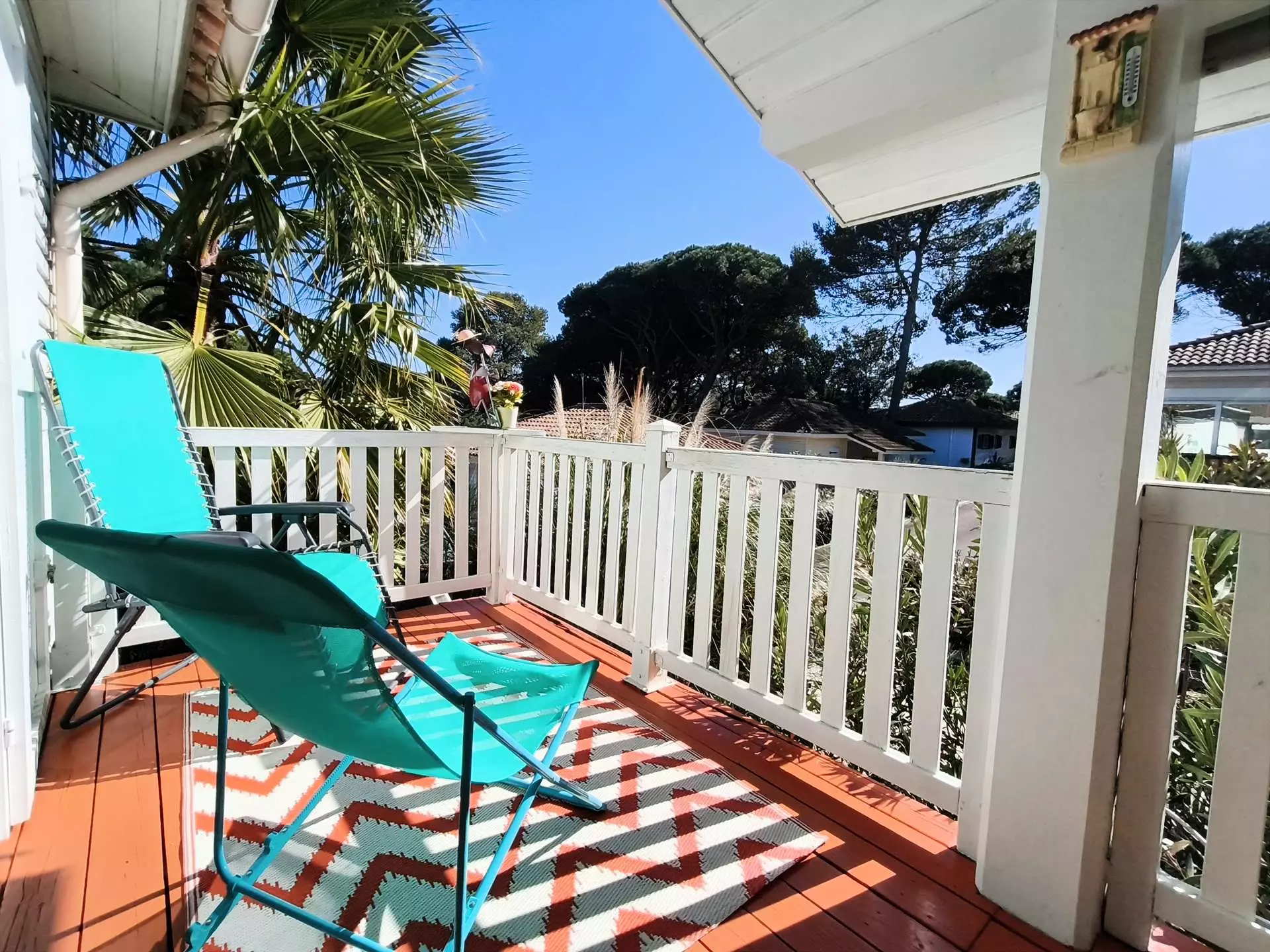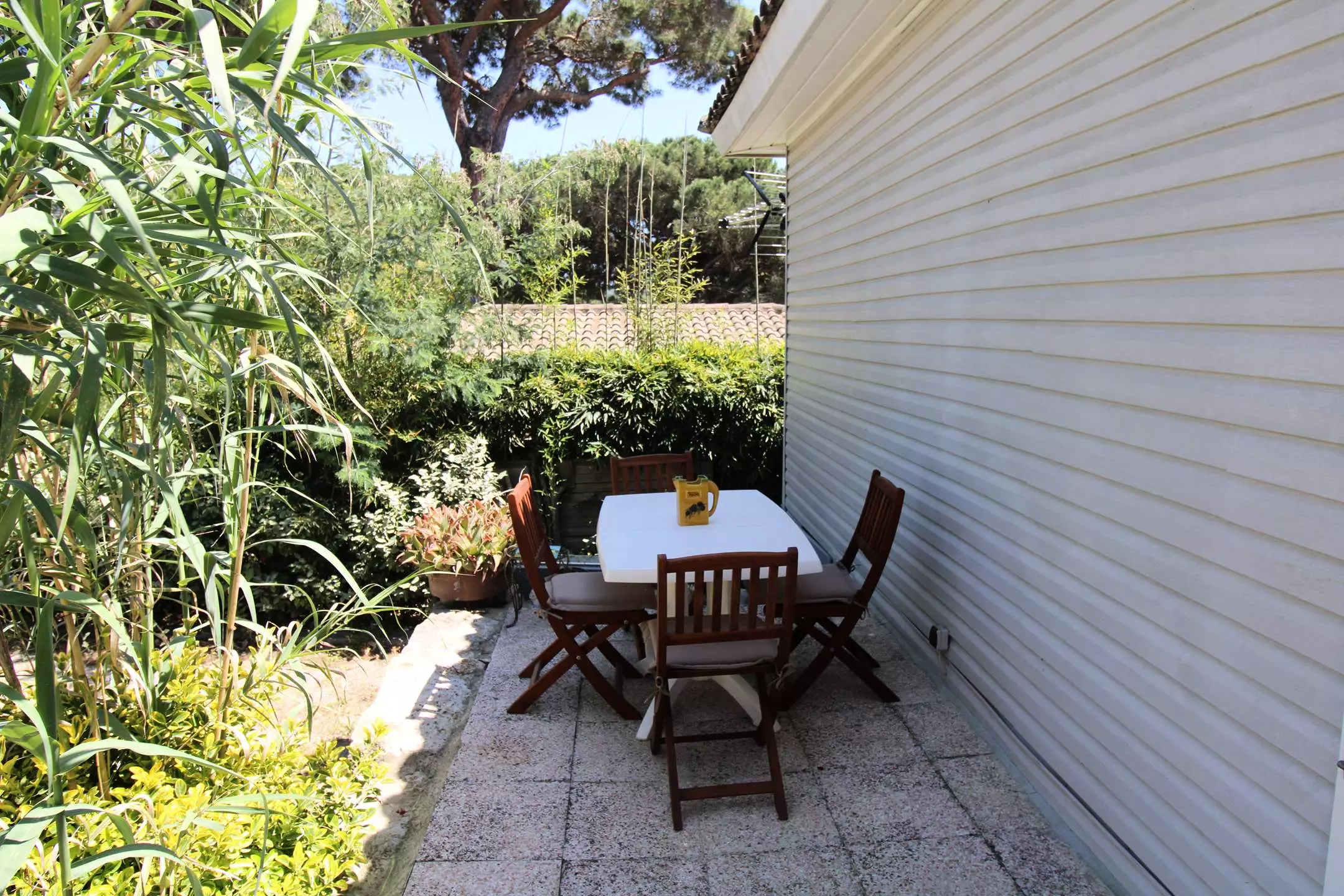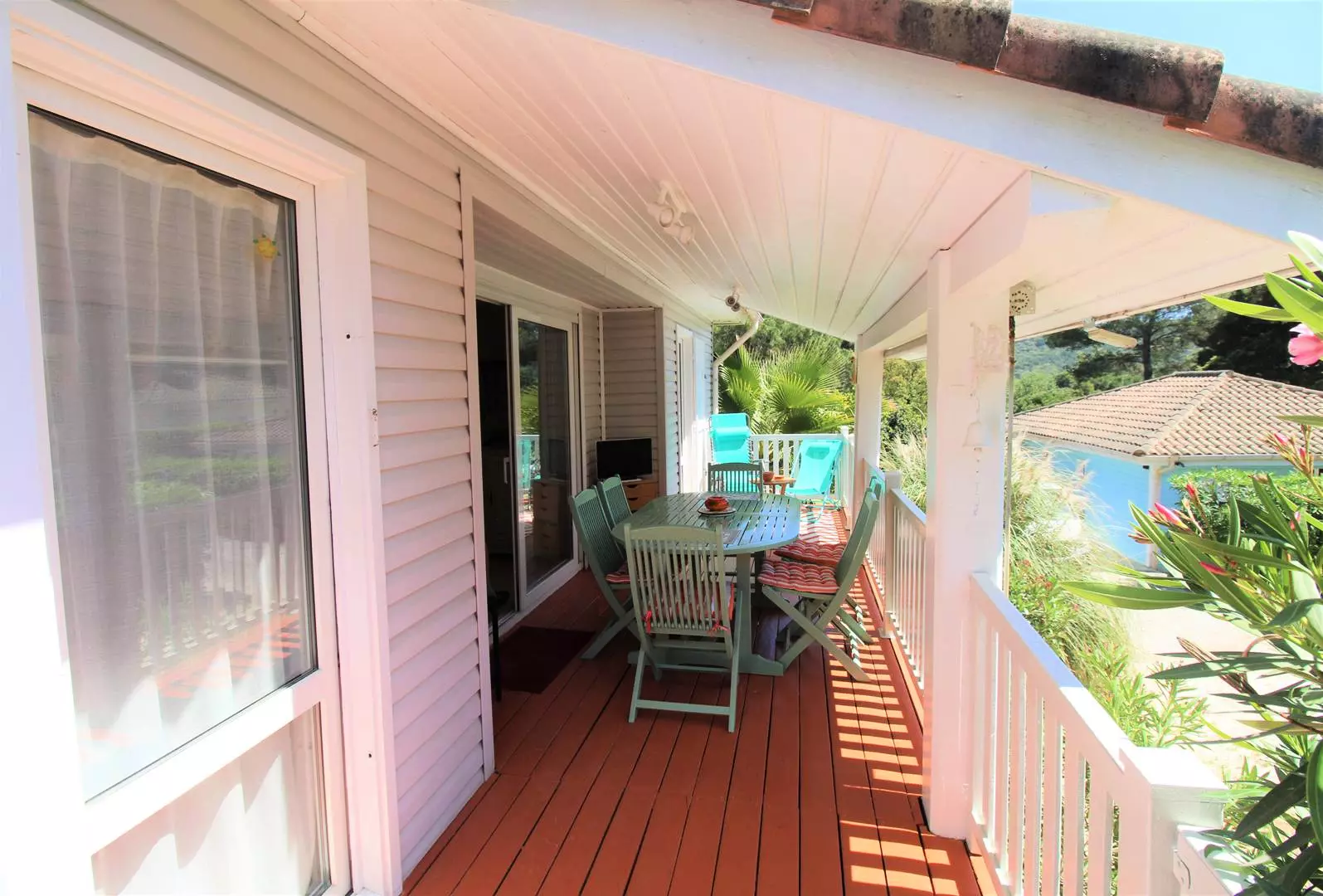 Enjoy the peace and quiet of the 2 furnished terraces, the main one facing the living room, the other at the back of the house to enjoy the rays of morning sunshine.