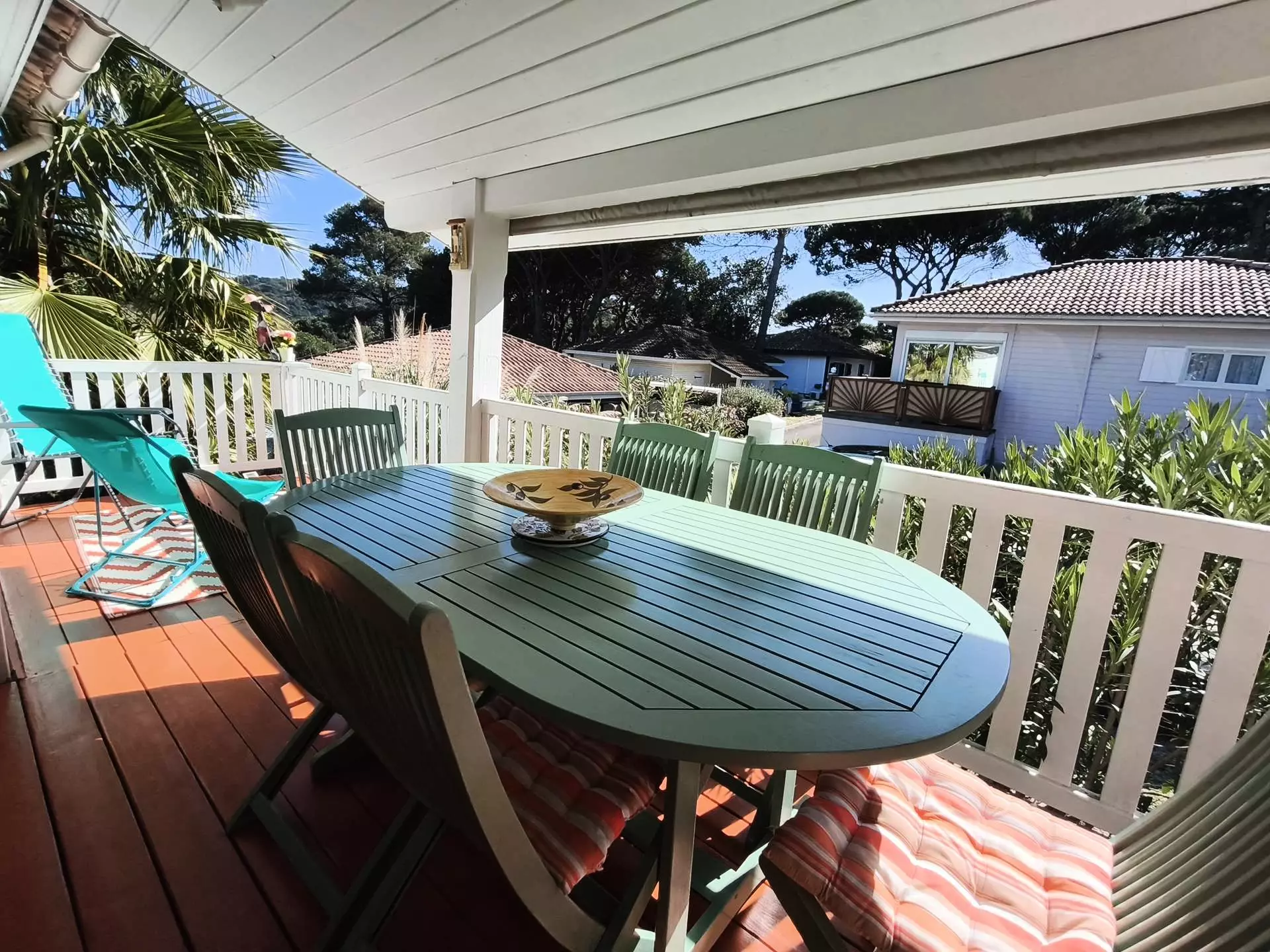 Located 5 km from Saint-Tropez, this residence houses a group of chalets with the appearance of Californian houses integrated into a 15-hectare pine-tree-lined site. Ideally located 2 km from the beaches, 1 km from the shops and 5 km from Saint-Tropez, you can easily visit the surrounding villages (Port Grimaud, Gassin, Ramatuelle).