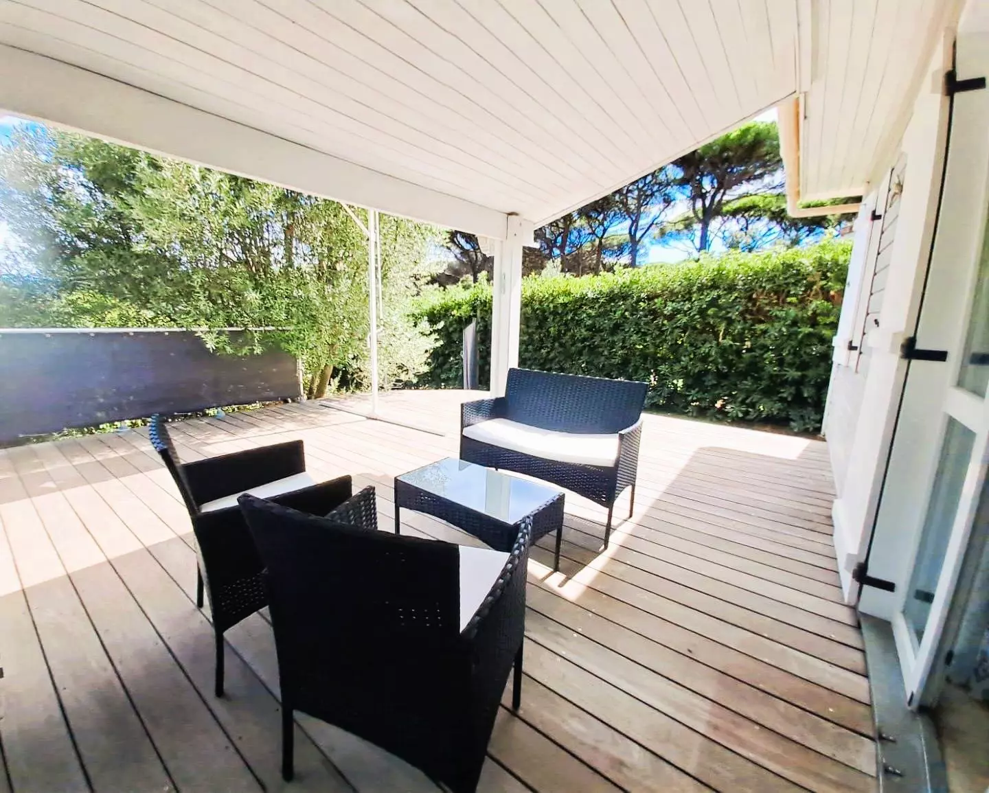 You will enter the living room facing the sheltered terrace and equipped with a dining area. In the living room you will have