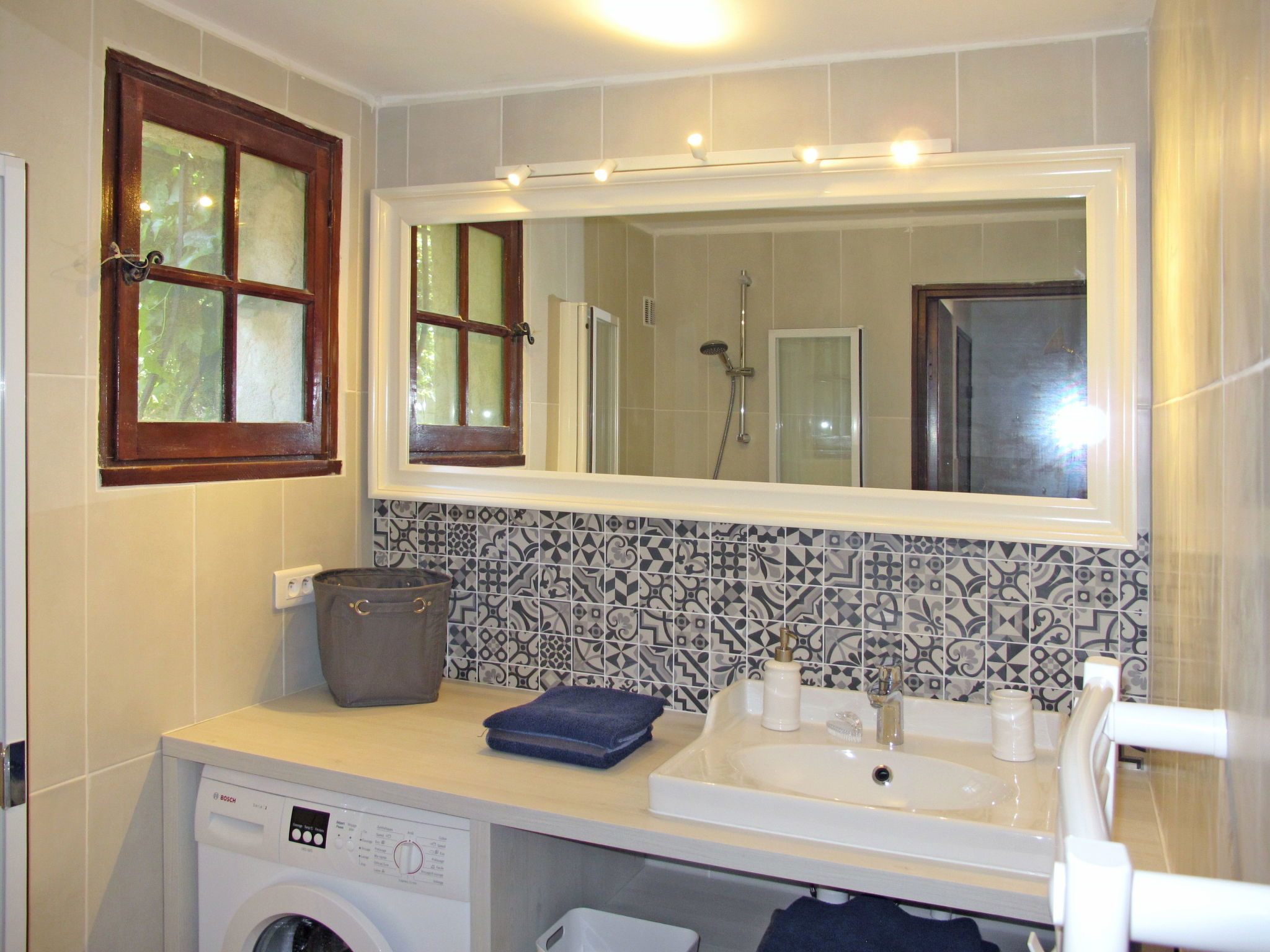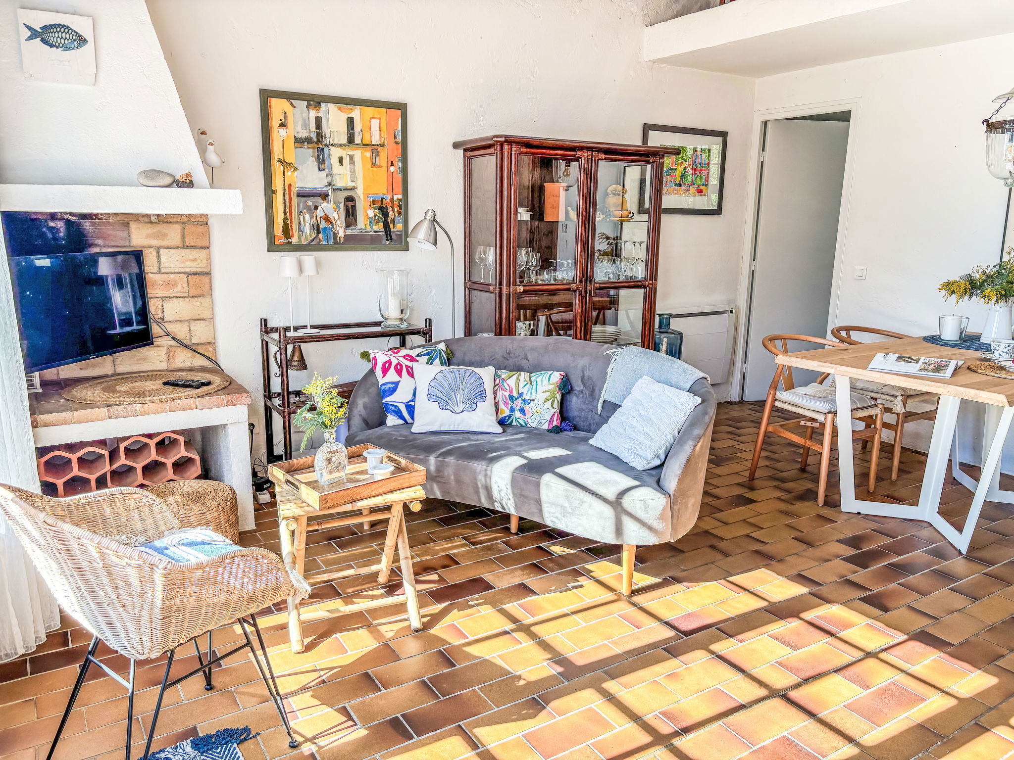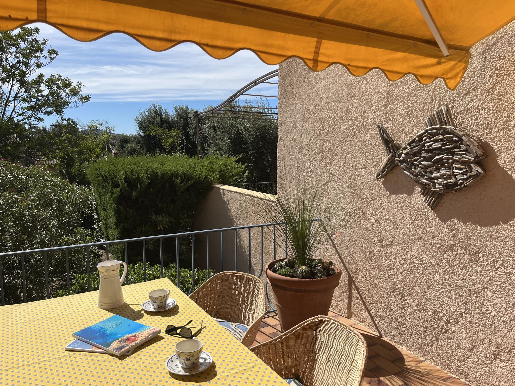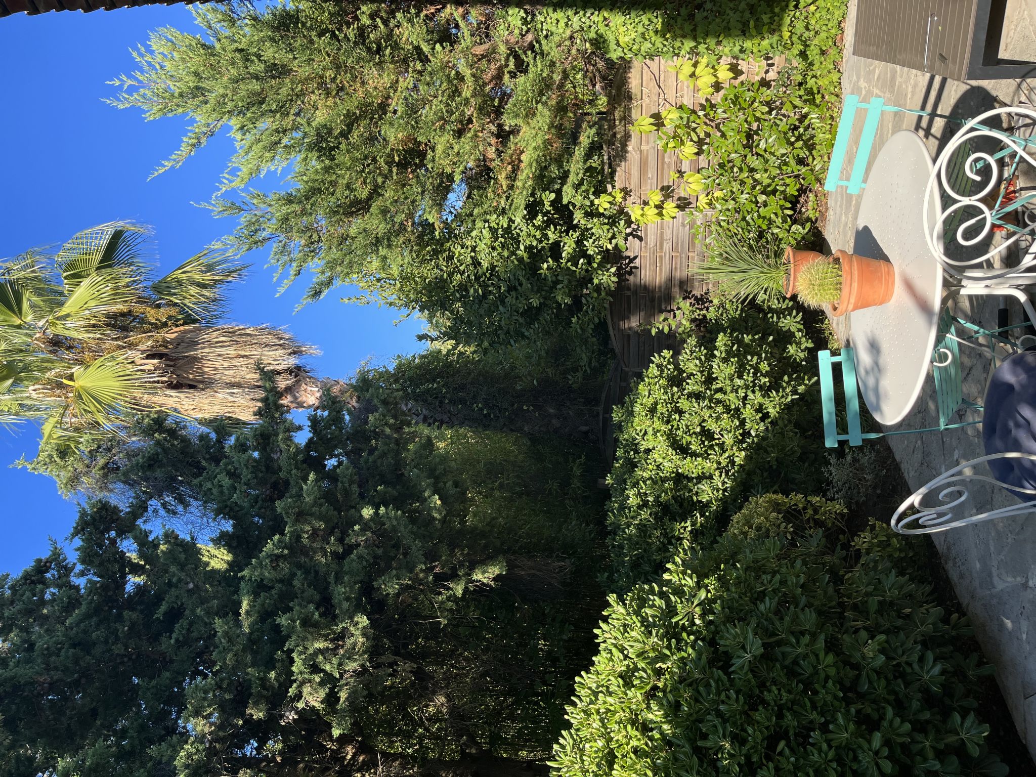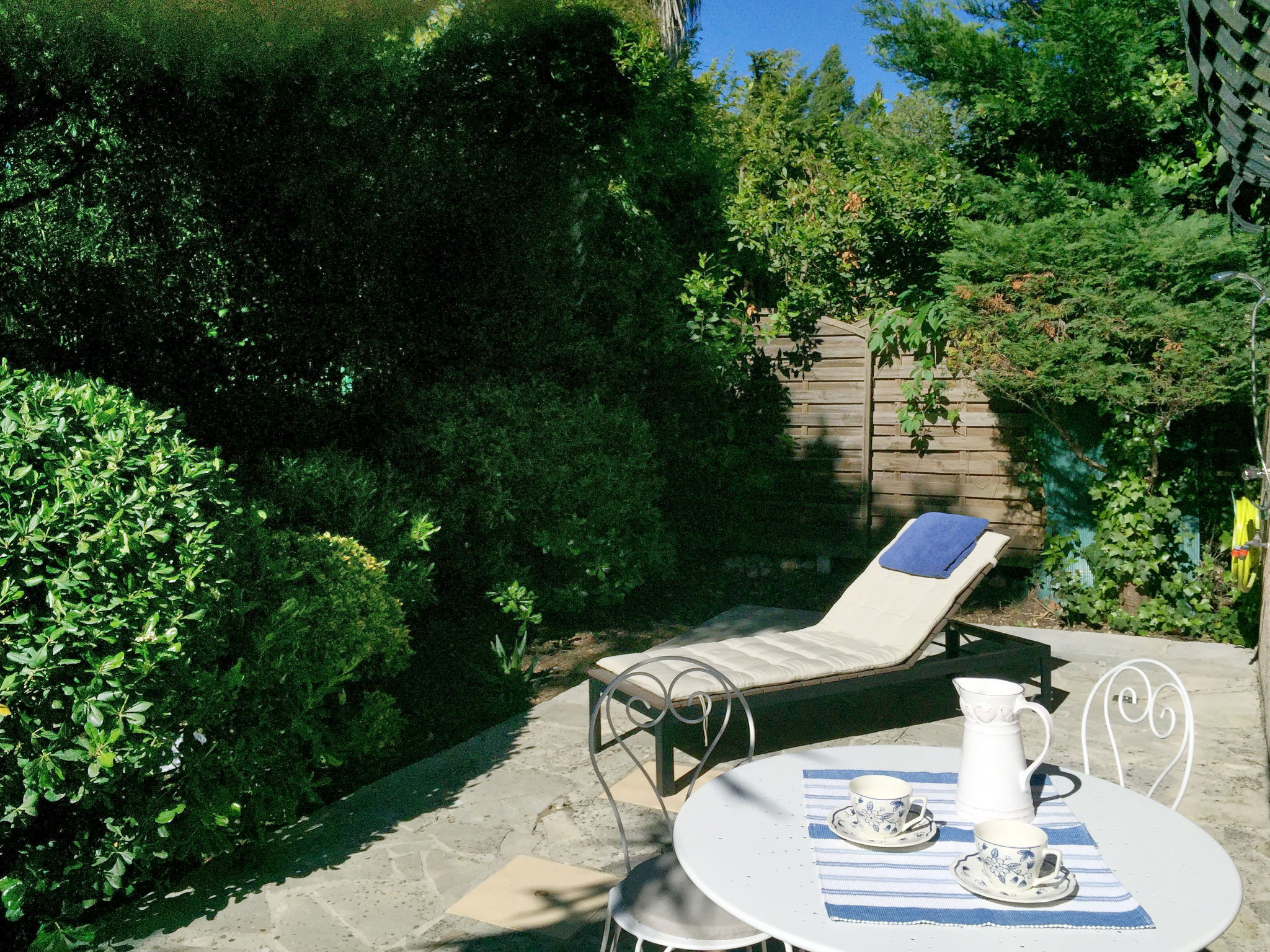 Terraced house "La Maison bleue". 6 km from the centre of Grimaud, 1.5 km from the centre of Port Grimaud, 10 km from the centre of Saint Tropez, in the residential district, 1 km from the sea. Private: well-kept garden 240 m2 with wildlife garden. Outdoor shower. Stepped path (8 steps) to the house. Public parking on the road. Shop 200 m, bus stop 1.2 km, sandy beach 1 km.