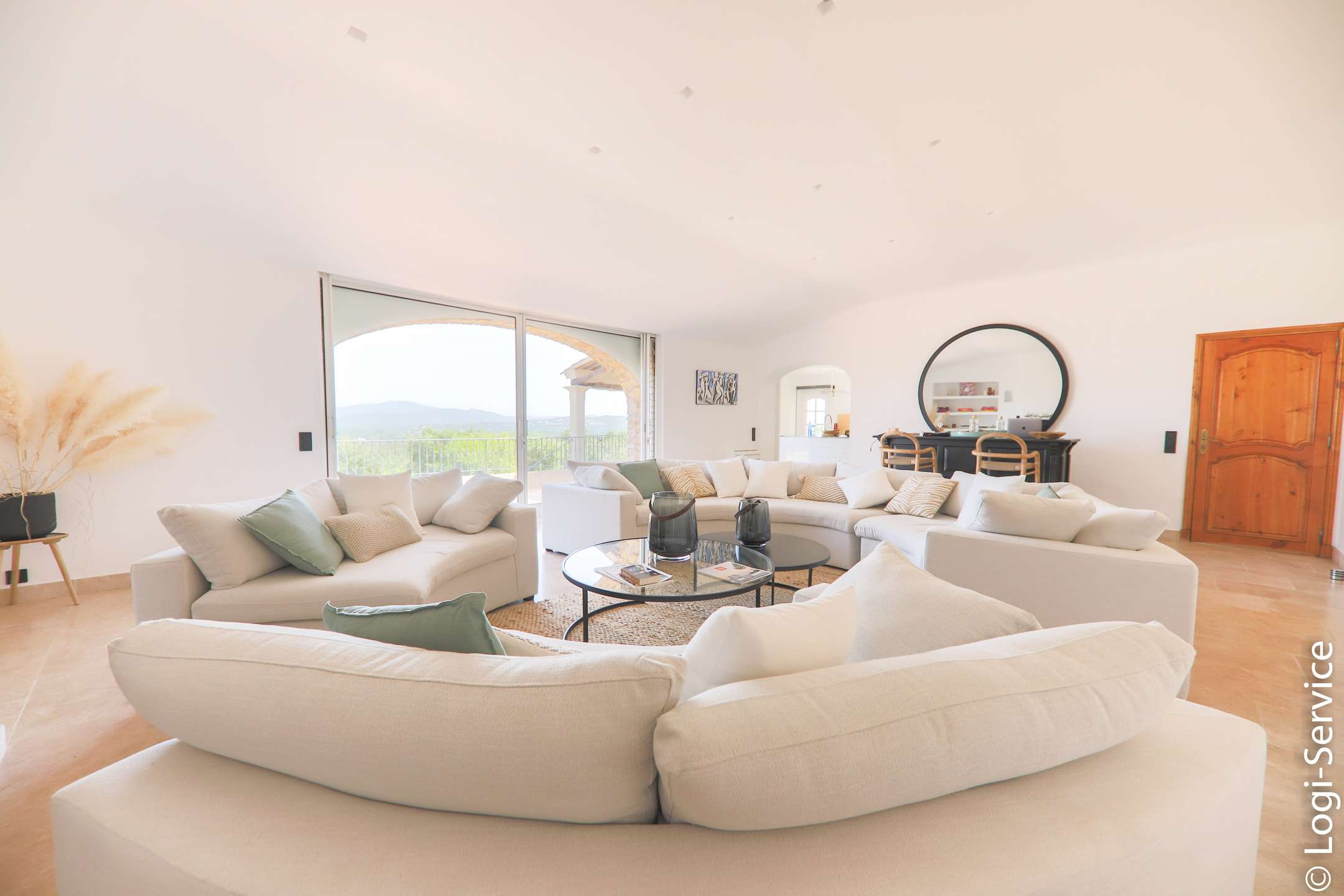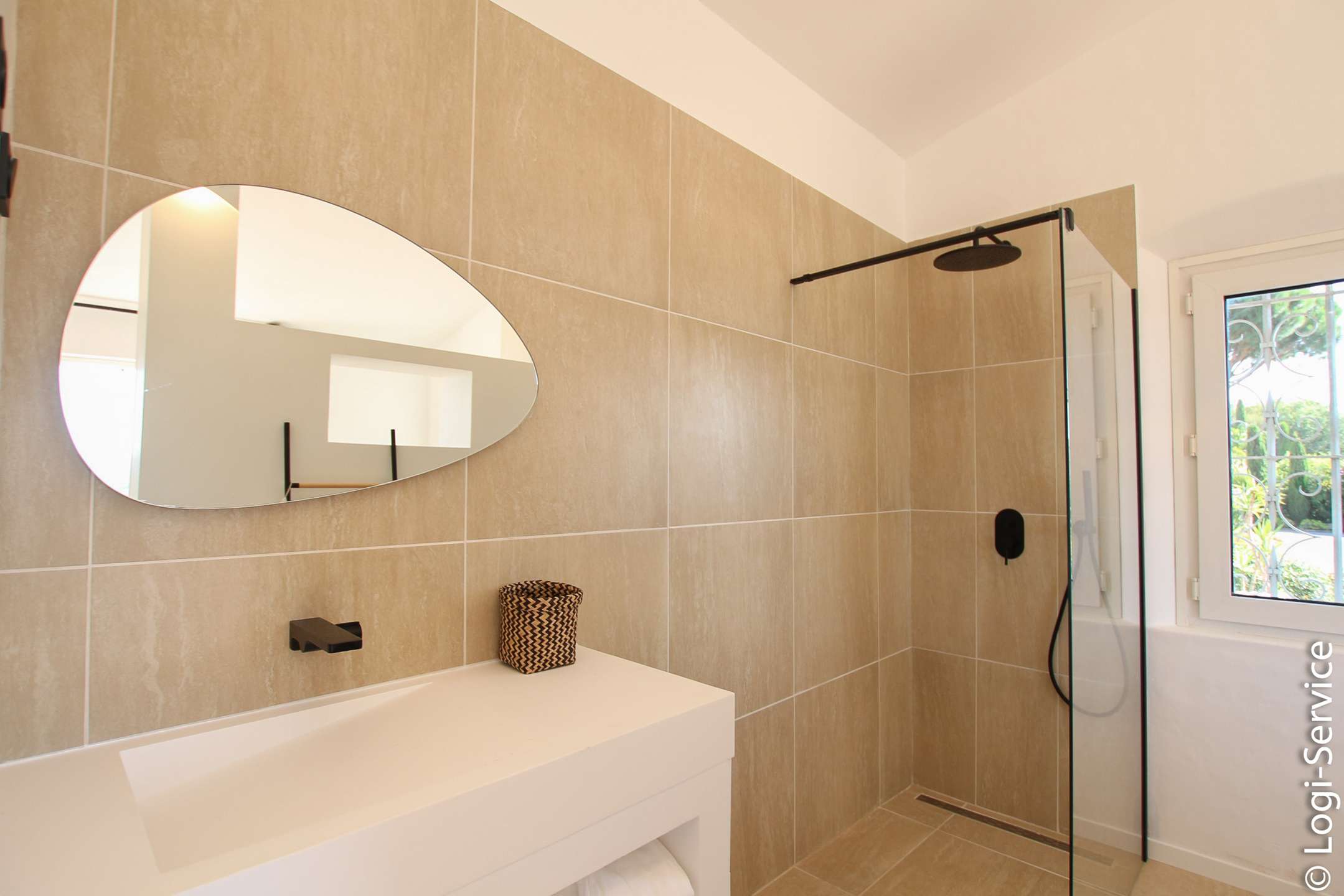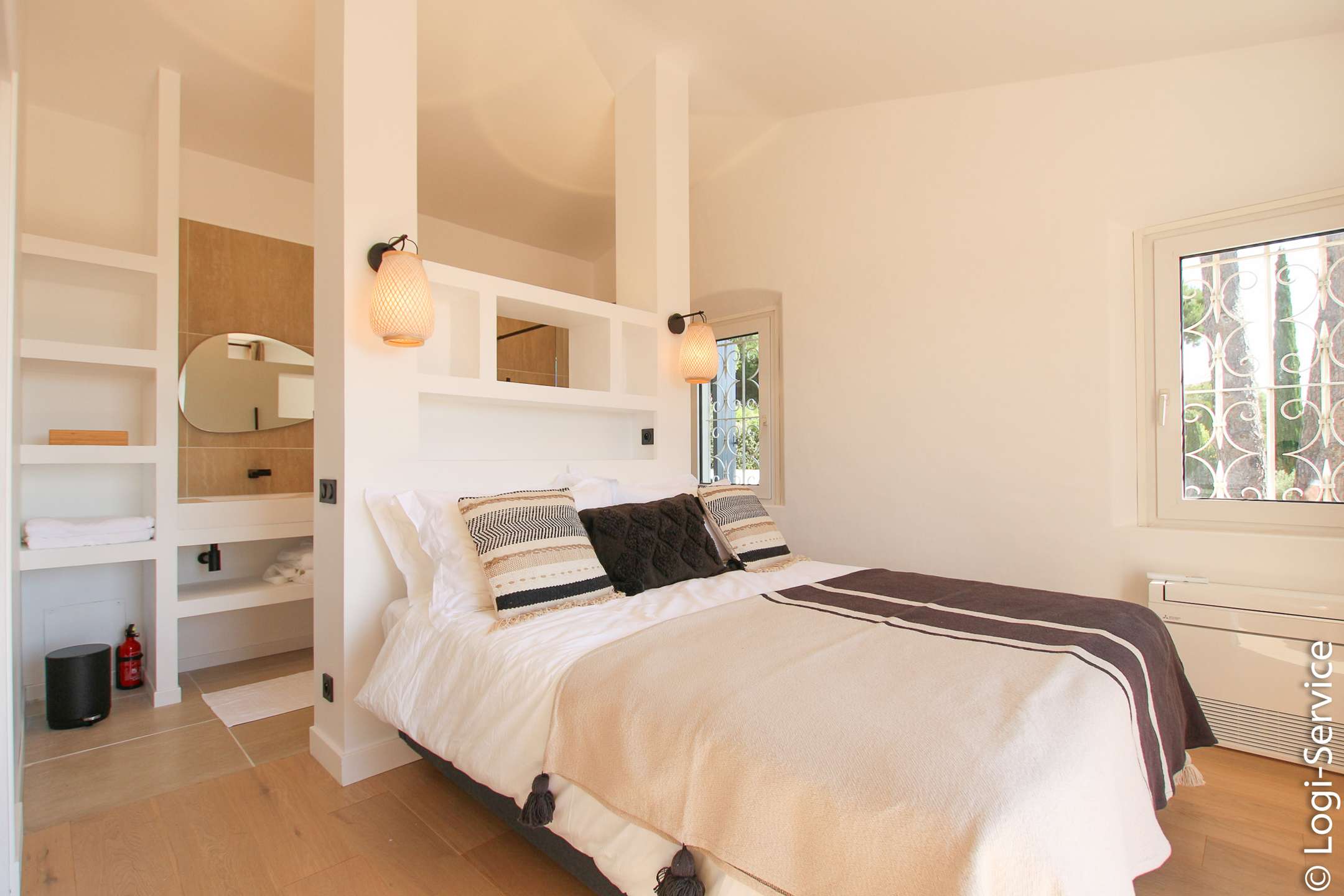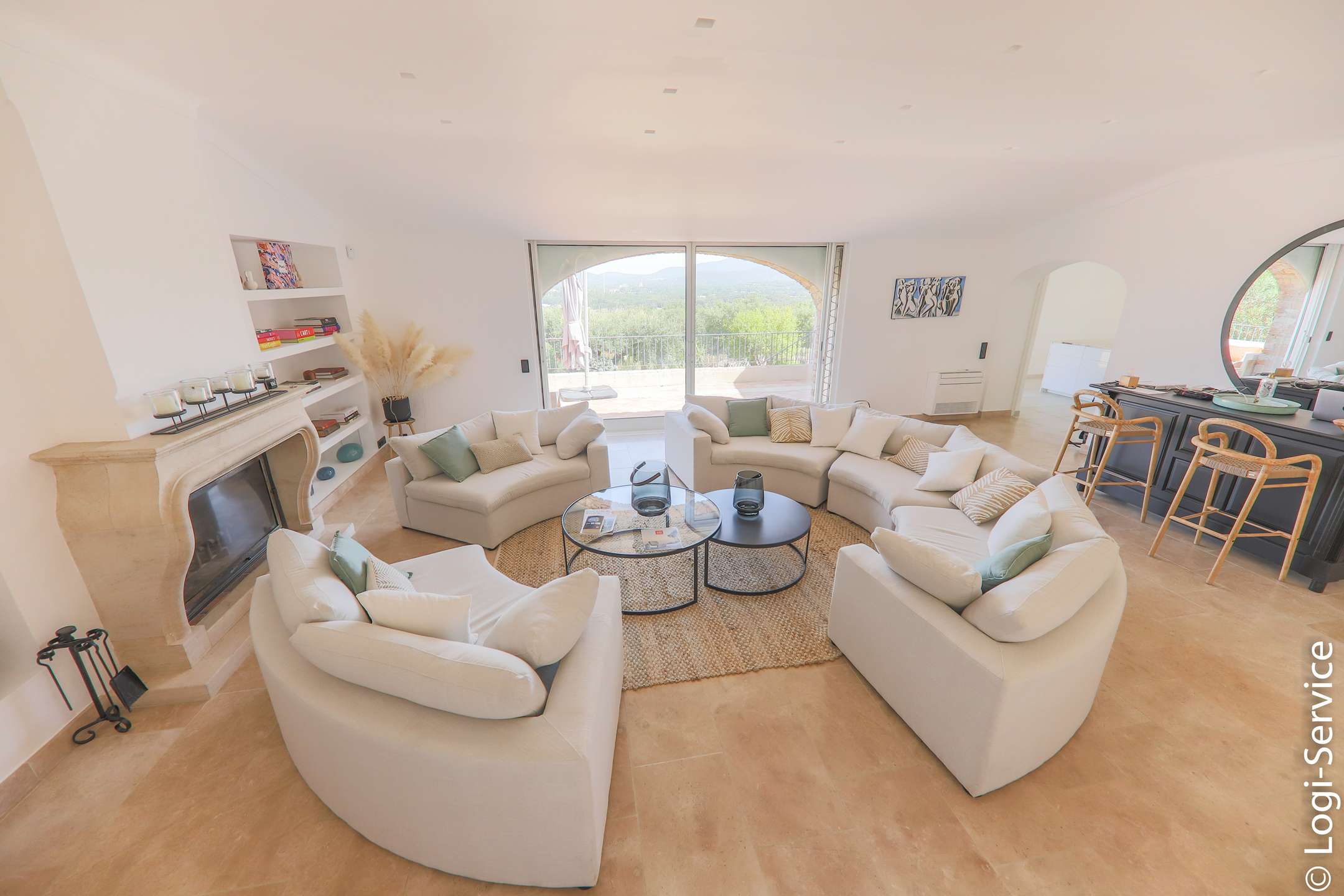 Ideally located, less than 4 km from Port Grimaud, 9 km from Sainte Maxime and 10 km from Saint Tropez, the Villa is fully air-conditioned and offers breathtaking sea and hill views, a large Bali stone swimming pool with counter current swimming and a petanque court.