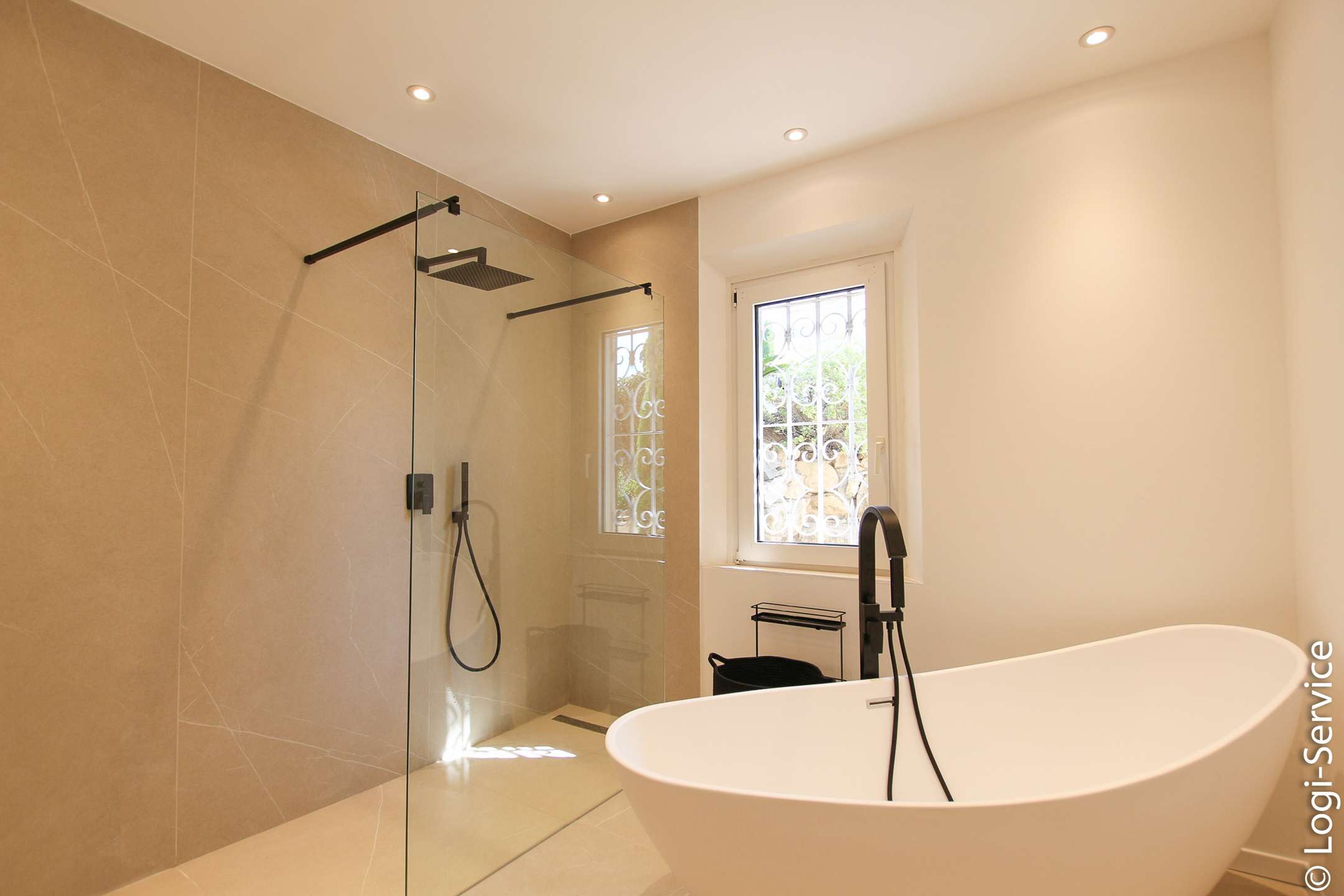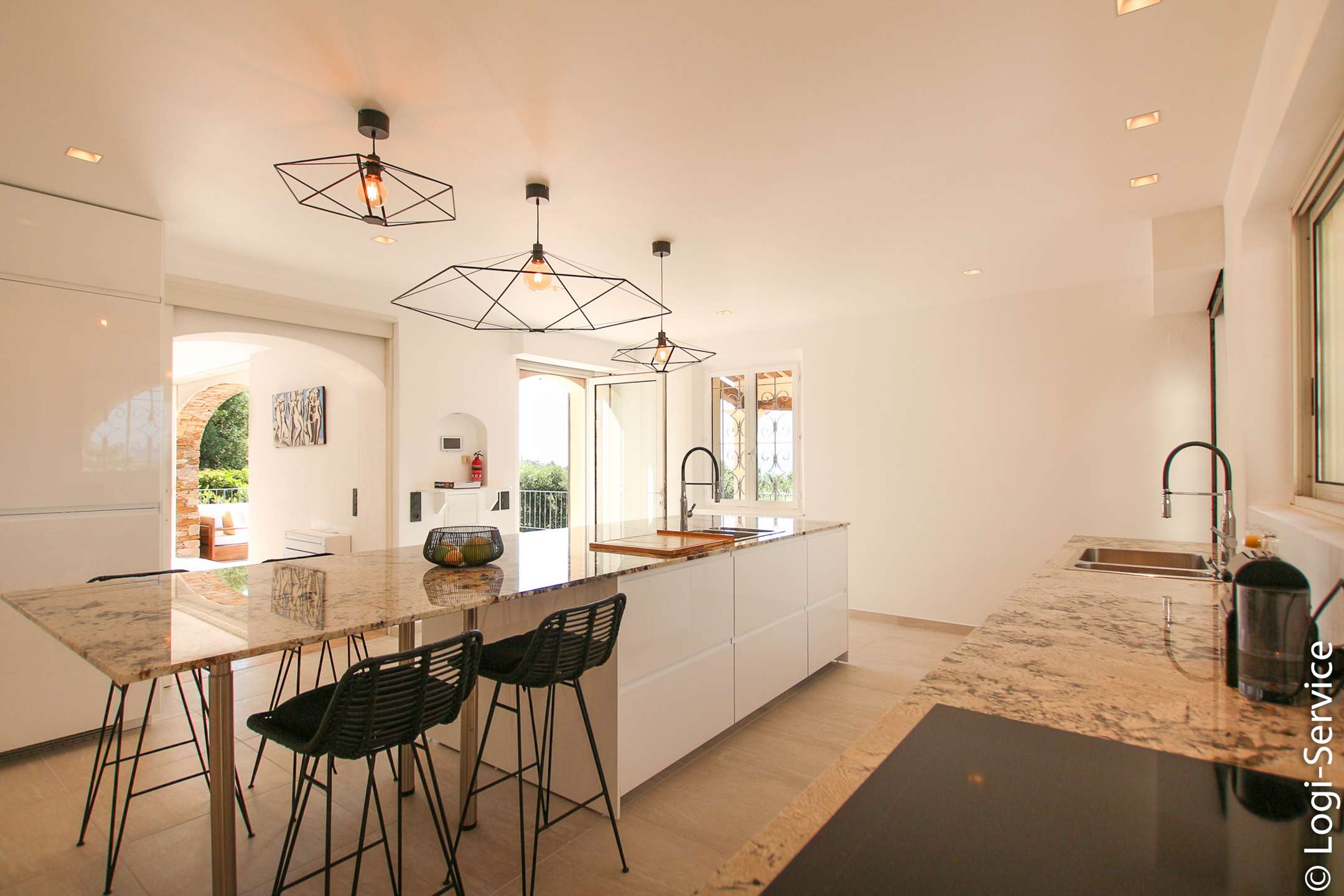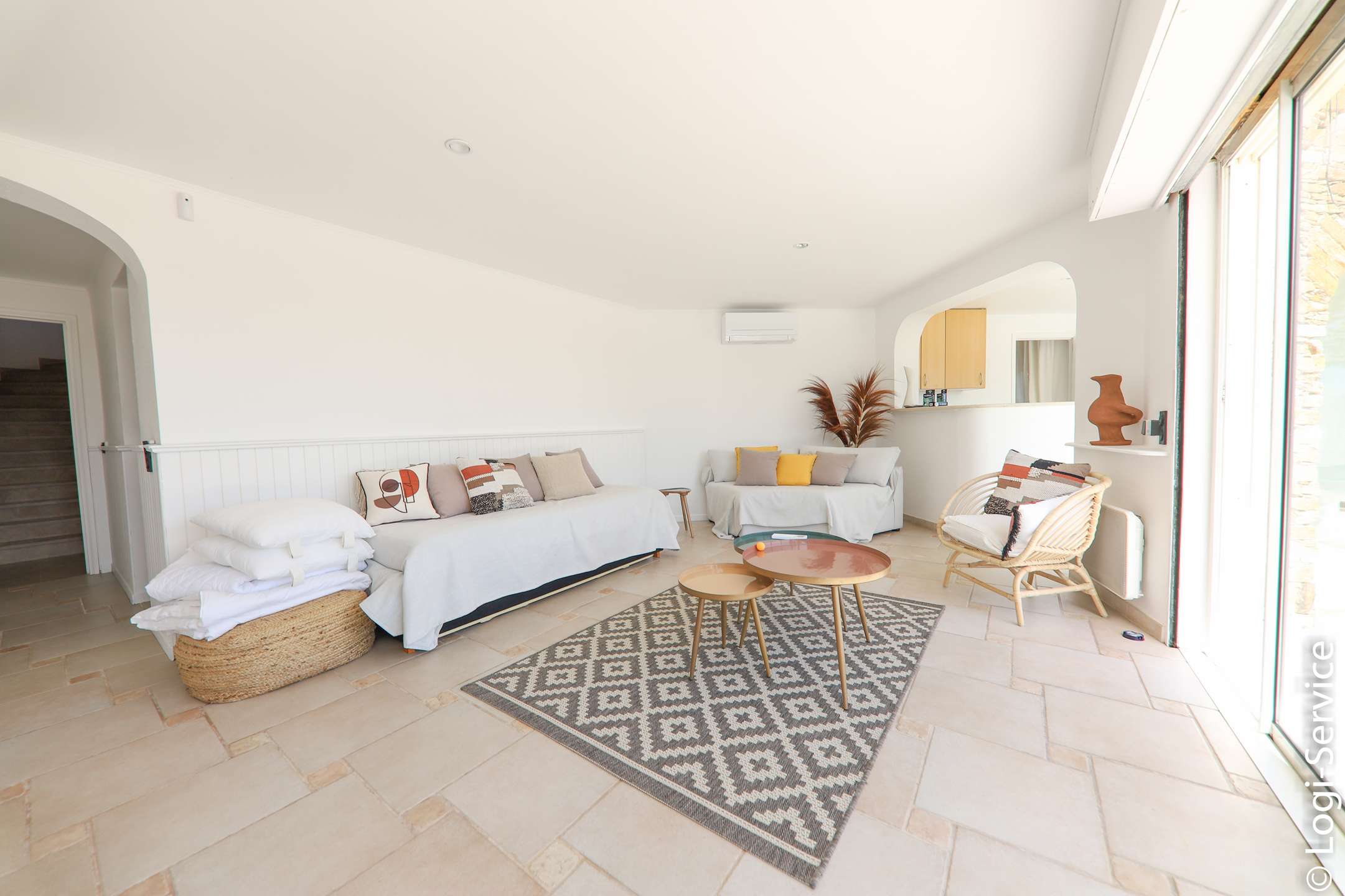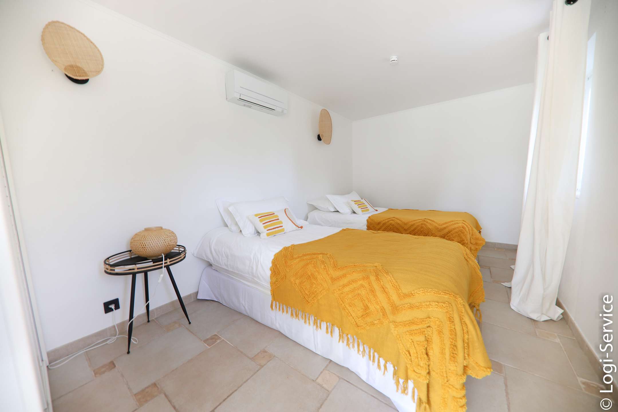Ideally located, less than 4 km from Port Grimaud, 9 km from Sainte Maxime and 10 km from Saint Tropez, the Villa is fully air-conditioned and offers breathtaking sea and hill views, a large Bali stone swimming pool with counter current swimming and a petanque court.