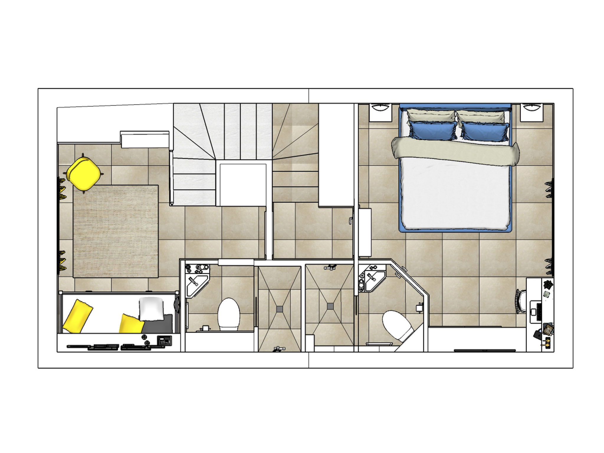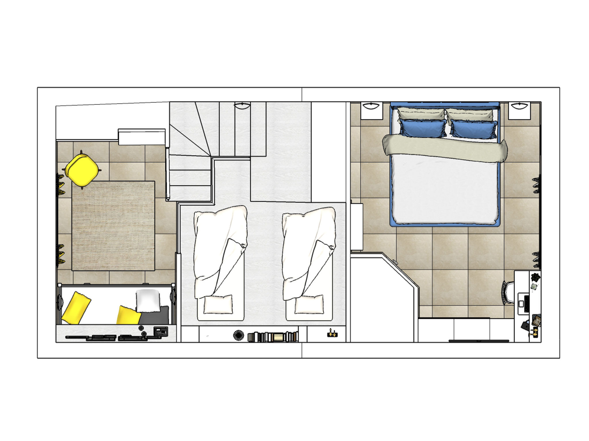 - 2x single bed
